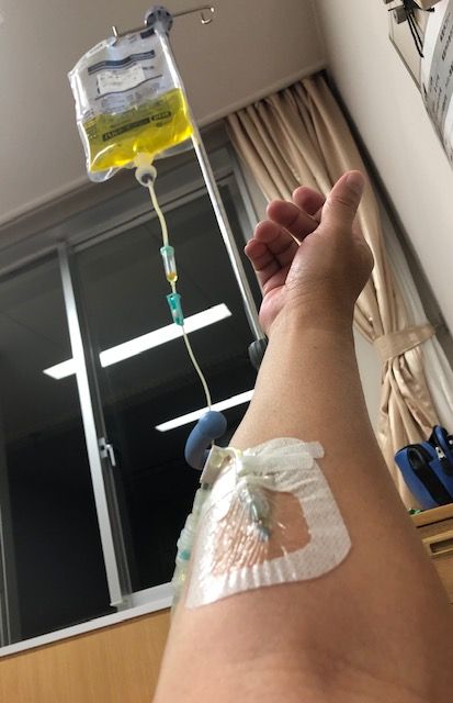 左手に10分おきに自動で測る血圧計。右には輸液の点滴。Oさんでなく、医師のAさんがシリコンのカニューレを静脈に刺したのには驚いた。「看護師さんの方がうまいんだよなあ、こういうのは」と思っていたら意外にも上手だった。ここから最悪、鎮痛剤を投入してくれる。